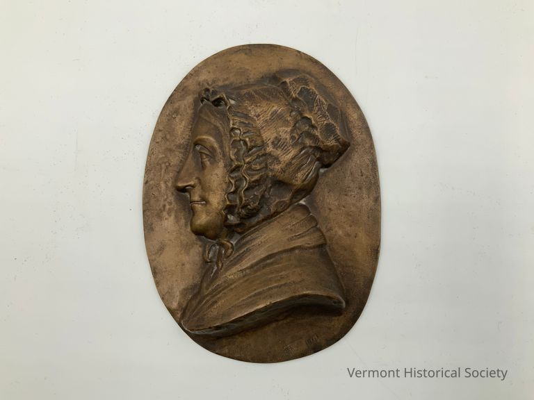 The subject of this bas relief was the grandmother of the artist. Jemima Loomis (1779-1846) of Connecticut married Thaddeus Leavitt (1778-1828 ) and they had two children, Jane and John Leavitt. Jane married Jonathon Hunt of Brattleboro, Vermont, and they had four children including William Morris Hunt.