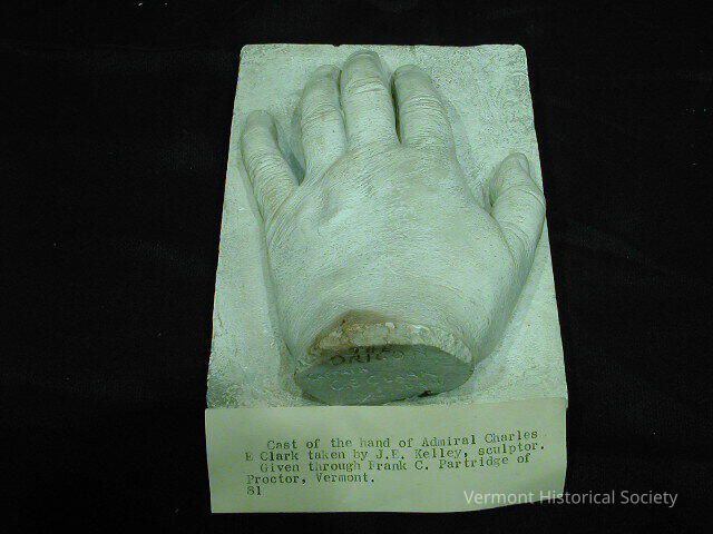 Admiral Charles Clark, along with fellow Vermont-born Admiral, George Dewey, had great fame in his lifetime. This casting was probably taken in the process of designing a sculpture. The note that accompanies the piece states that it was taken by the artist J. F. Kelley and came to VHS through Frank Partridge of Proctor, Vermont. Partridge was an executive with the Vermont Marble Company and would later to go on to serve as a U.S. Senator from Vermont.