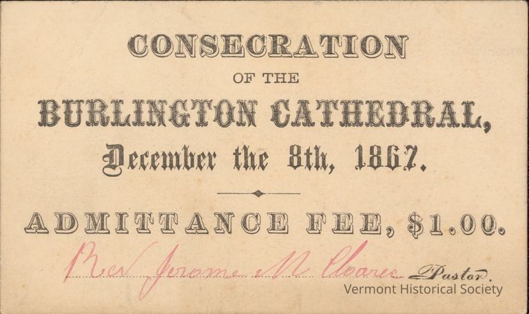 Ticket for the consecration of the Burlington cathedral.