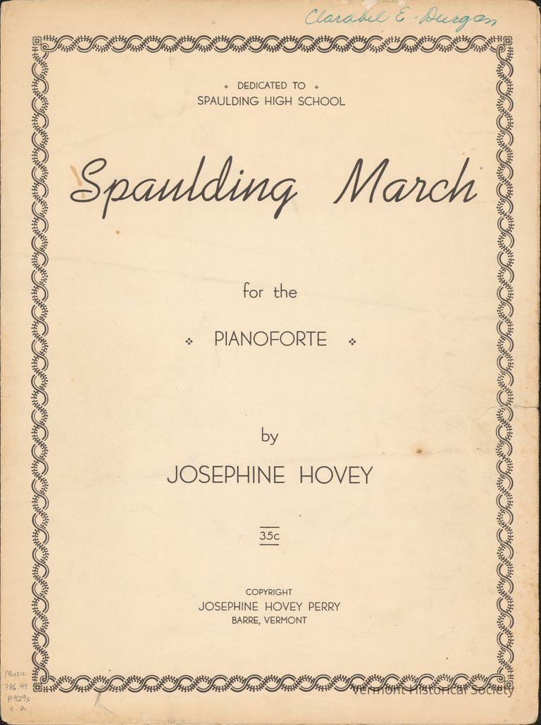 Sheet music for the song "Spaulding March," composed by Josephine Hovey Perry
