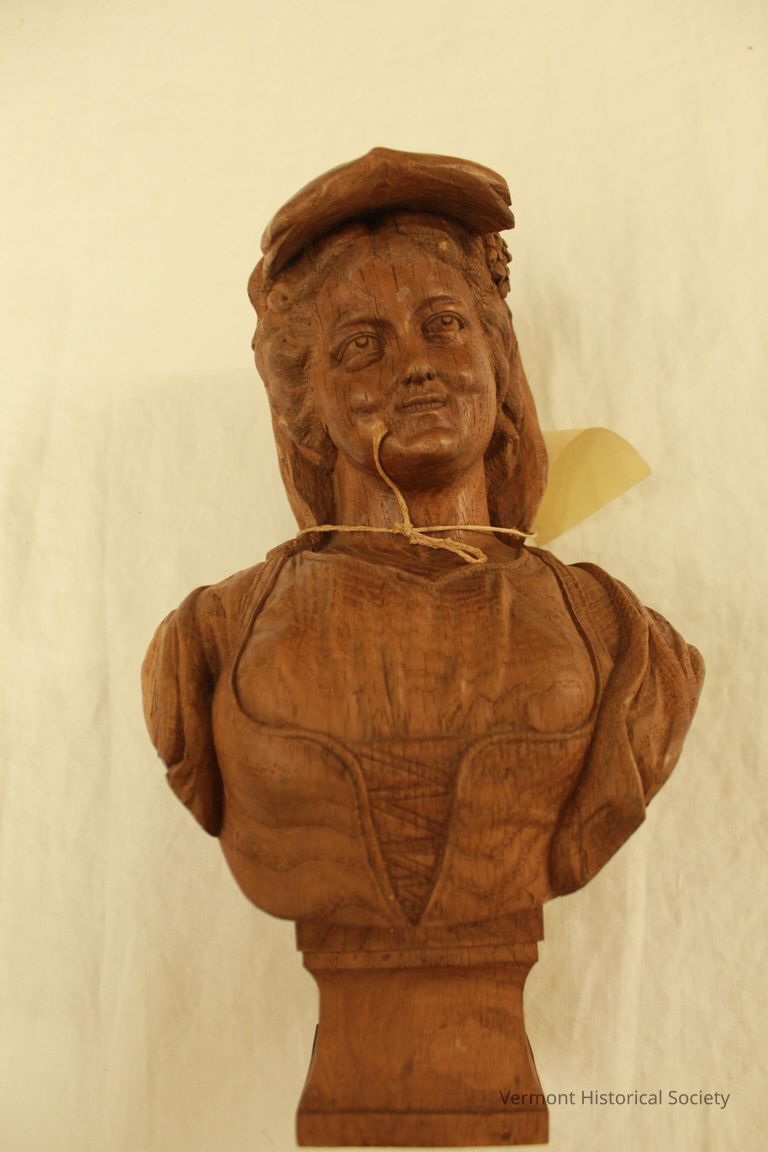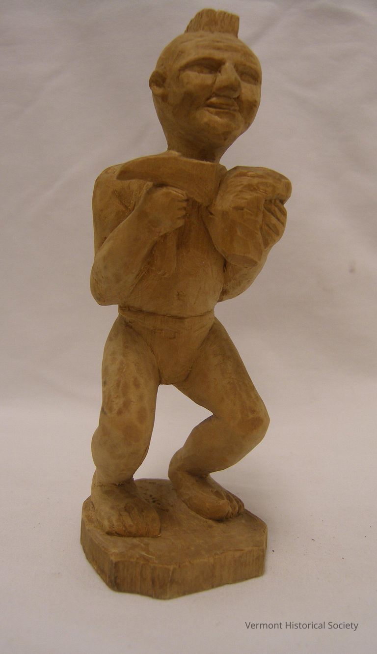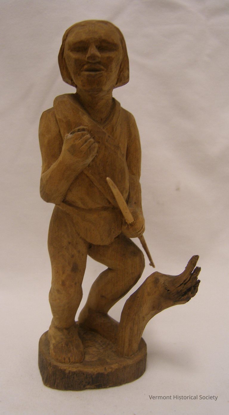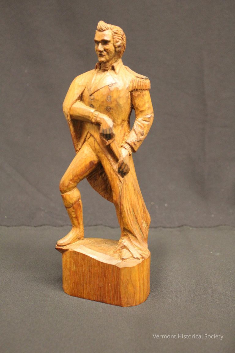 Carved by Horace M. Abrams of Arlington, Vermont, using wood from a tree that grew near Ethan Allen's home site.