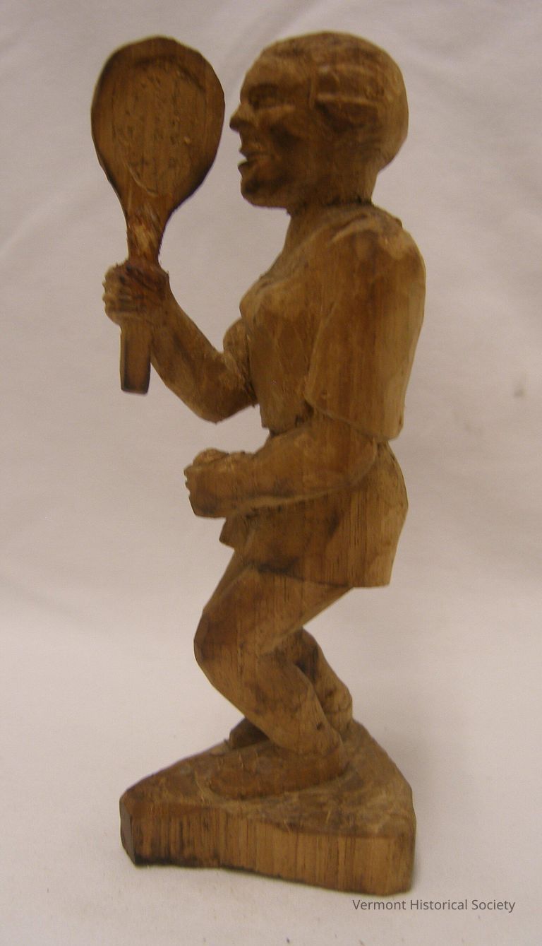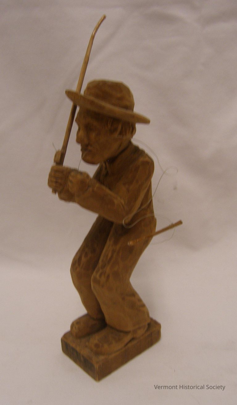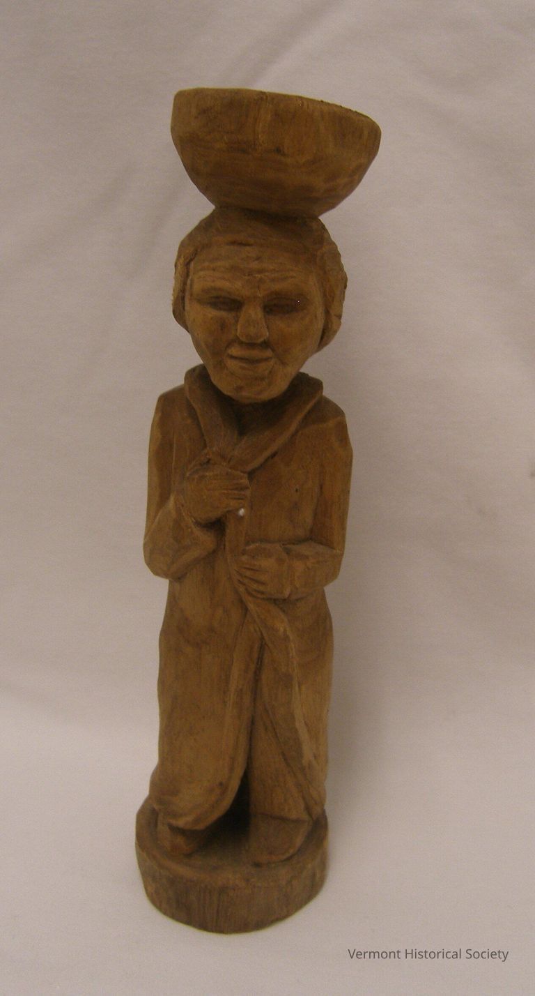 Carved by Horace M. Abrams of Arlington, Vermont, using wood from a tree that grew near Ethan Allen's home site.