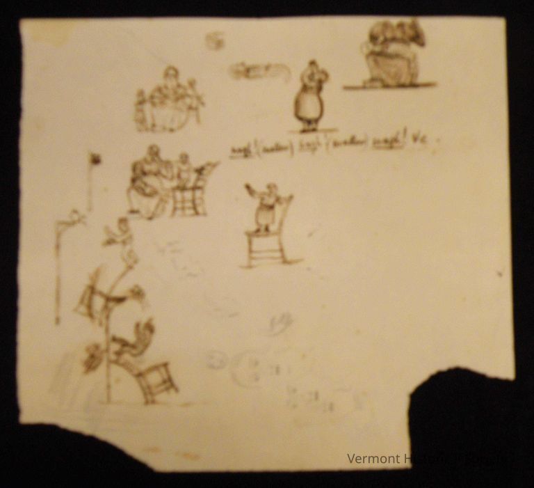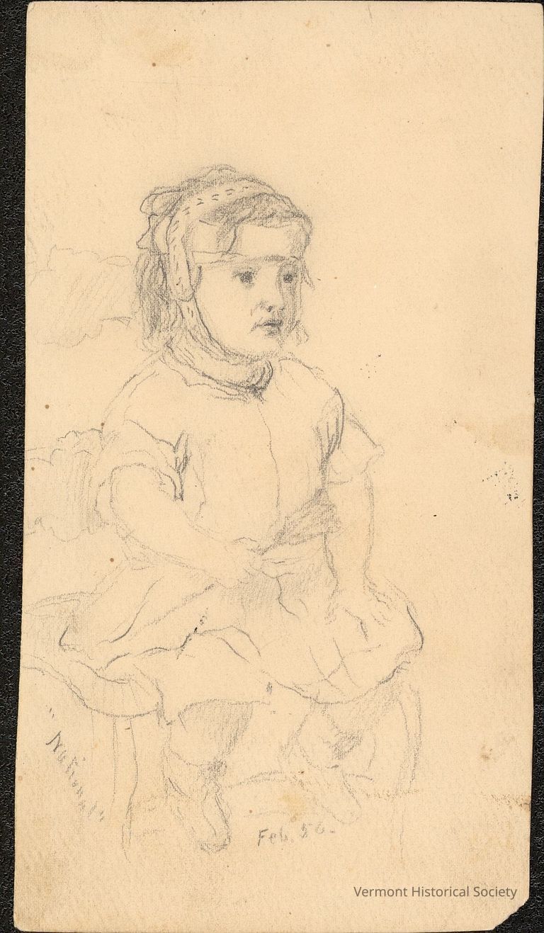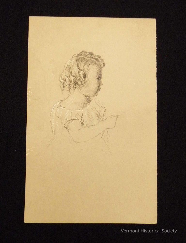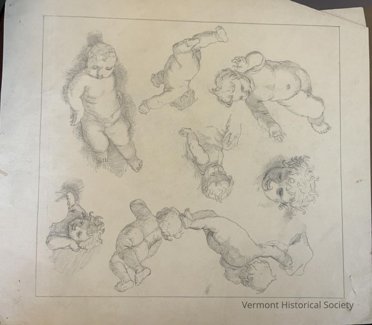 Sketch of cherubs in various poses. On the back it says “Fanny Ide St Johnsbury Vt. Free hand drawing done without measurements age 15 yrs.”