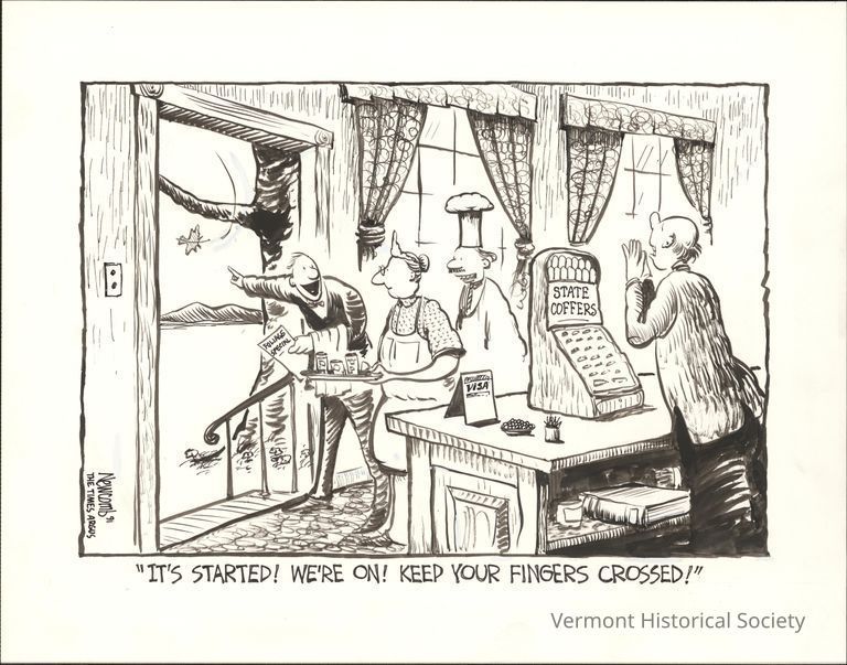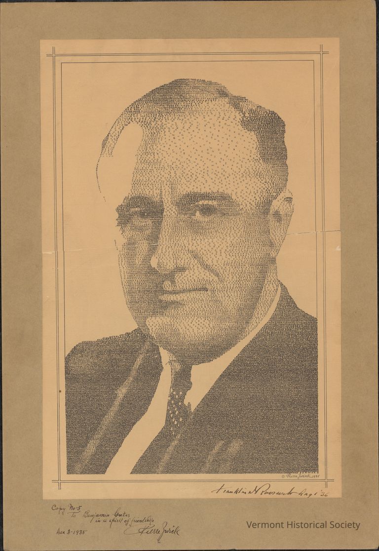 Purchased from the Robert A. Mello Collection auction on October 12, 2024 hosted at the Memorial Lounge in the Waterman Building at UVM. Purchased with a series of items for the Leahy Library, transferred to the museum collection.