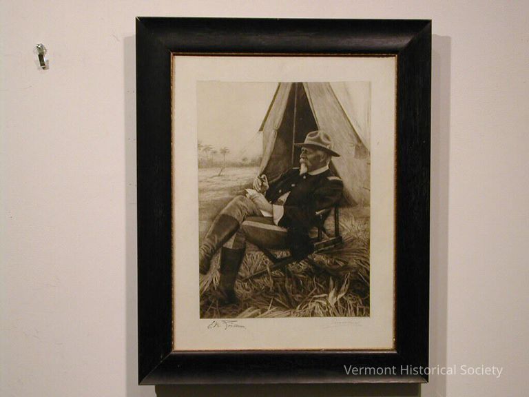 Admiral Charles Clark, along with fellow Vermont-born Admiral, George Dewey, had great fame in his lifetime. This casting was probably taken in the process of designing a sculpture. The note that accompanies the piece states that it was taken by the artist J. F. Kelley and came to VHS through Frank Partridge of Proctor, Vermont. Partridge was an executive with the Vermont Marble Company and would later to go on to serve as a U.S. Senator from Vermont.