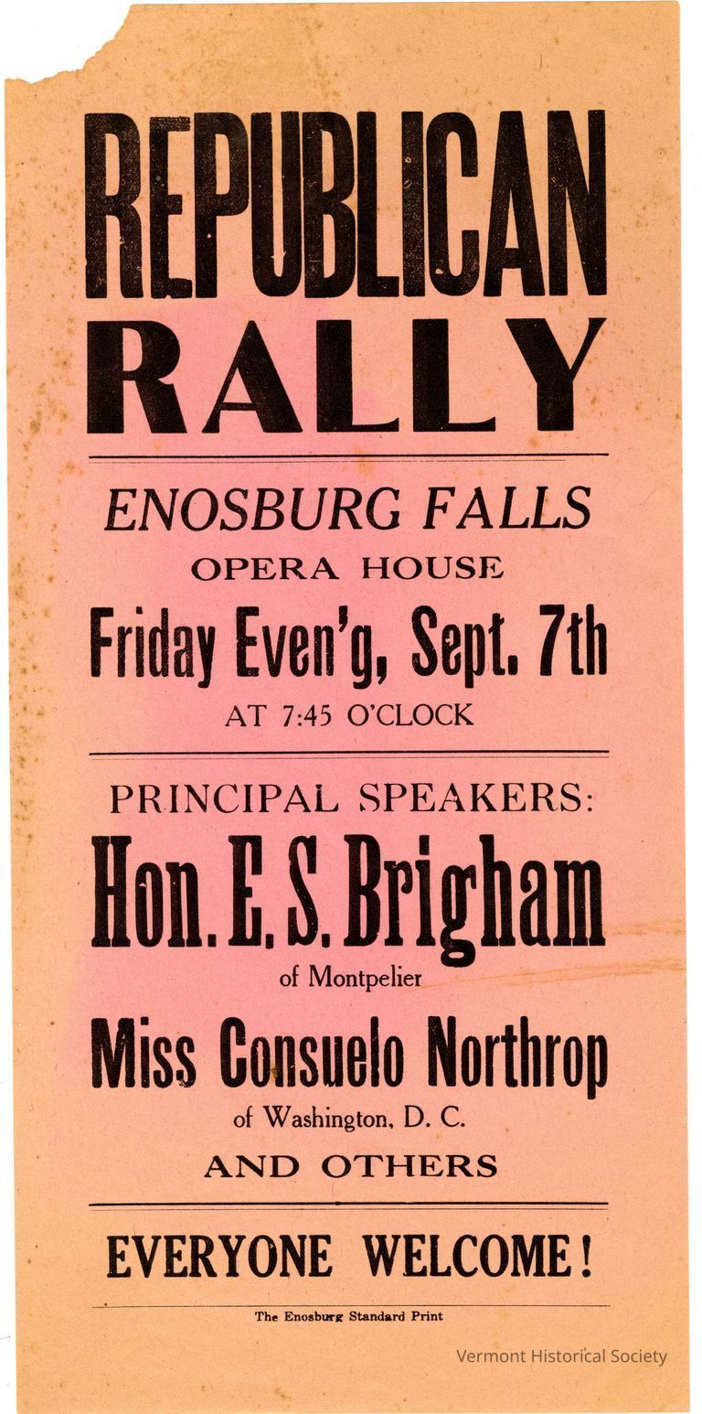Broadside advertising Republican rally in Enosburg Falls