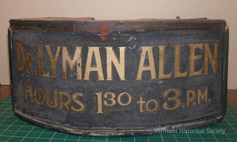 Used on the office of Dr. Lyman Allen on Main Street in Burlington, Vermont