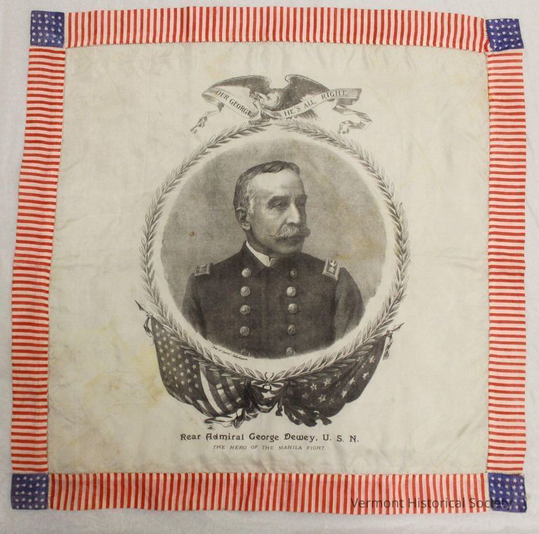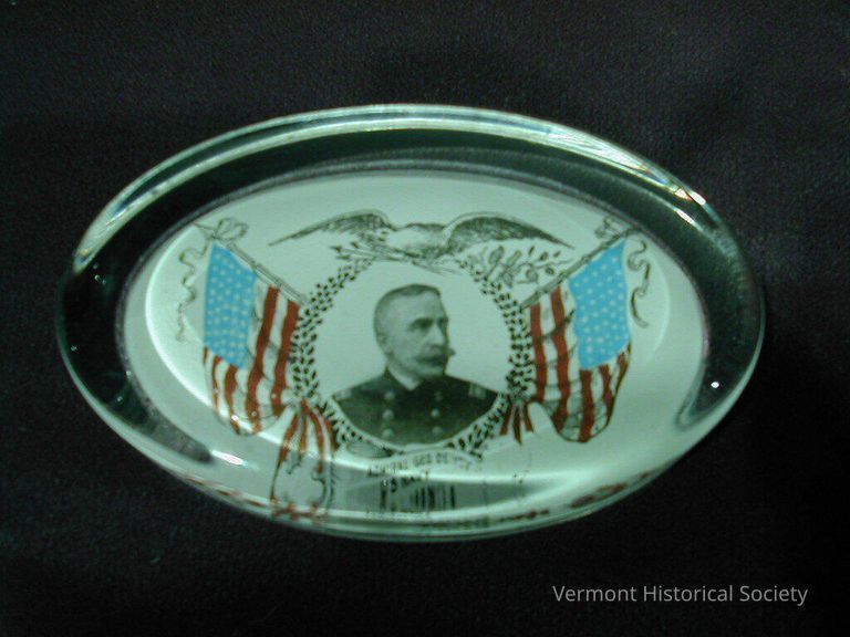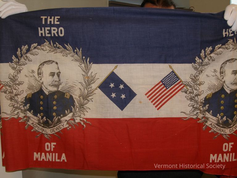 Made for Dewey Day, a large celebration in Montpelier, Vermont, welcoming war hero Admiral George Dewey, home from the Spanish-American War.