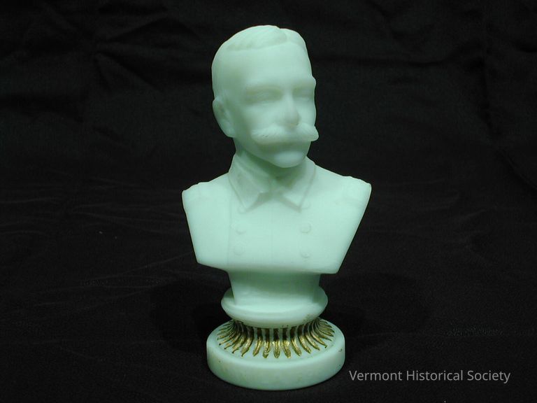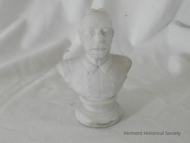 Admiral Charles Clark, along with fellow Vermont-born Admiral, George Dewey, had great fame in his lifetime. This casting was probably taken in the process of designing a sculpture. The note that accompanies the piece states that it was taken by the artist J. F. Kelley and came to VHS through Frank Partridge of Proctor, Vermont. Partridge was an executive with the Vermont Marble Company and would later to go on to serve as a U.S. Senator from Vermont.